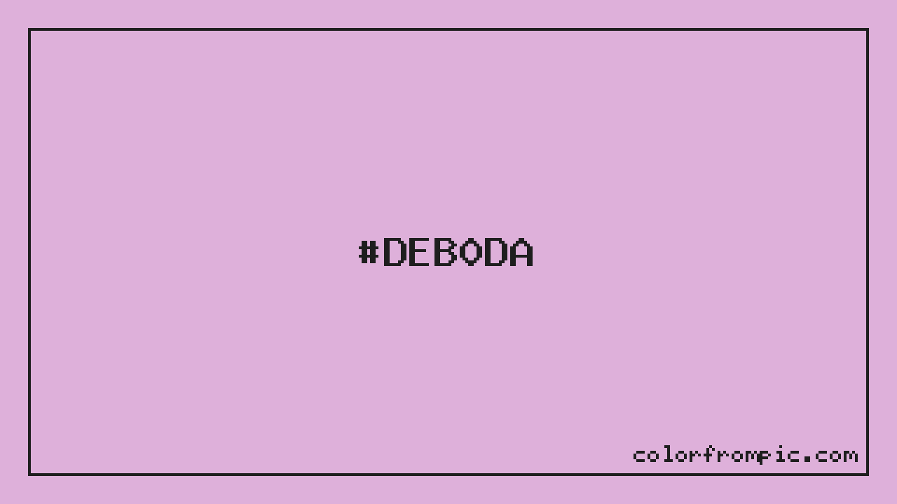 This color works well in various design contexts. As a lighter shade, it's excellent for backgrounds, negative space, and creating a sense of openness in designs. The moderate to low saturation gives this color a sophisticated, muted quality that works well in professional and minimalist designs. When pairing #DEB0DA with other colors, consider its complementary color at hue 125° for maximum contrast, or use analogous colors within 30° of its hue for harmonious combinations. The decimal representation of this color is 14594266, which can be useful in certain programming contexts.