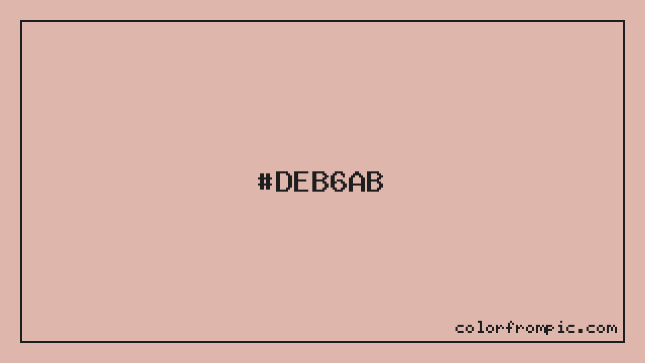 This color works well in various design contexts. As a lighter shade, it's excellent for backgrounds, negative space, and creating a sense of openness in designs. The moderate to low saturation gives this color a sophisticated, muted quality that works well in professional and minimalist designs. When pairing #DEB6AB with other colors, consider its complementary color at hue 193° for maximum contrast, or use analogous colors within 30° of its hue for harmonious combinations. The decimal representation of this color is 14595755, which can be useful in certain programming contexts.