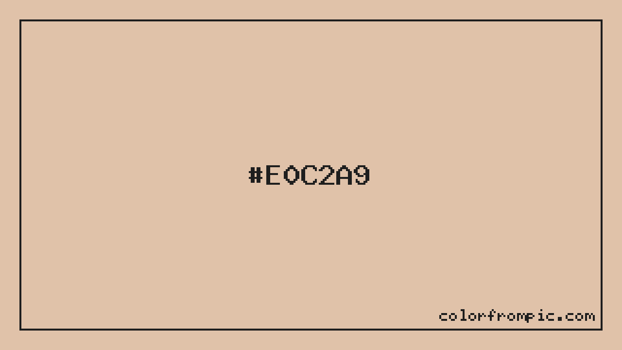 The HEX code for Light Vermilion is #E0C2A9. In CSS you can use it directly as color: #E0C2A9; or as a background: background-color: #E0C2A9;. The three-character shorthand is not available for this color since it cannot be reduced without changing the value. Use the full six-character hex for accurate reproduction in any web or design project.