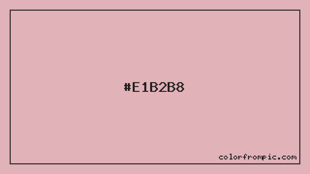 The HEX code for Light Rose is #E1B2B8. In CSS you can use it directly as color: #E1B2B8; or as a background: background-color: #E1B2B8;. The three-character shorthand is not available for this color since it cannot be reduced without changing the value. Use the full six-character hex for accurate reproduction in any web or design project.