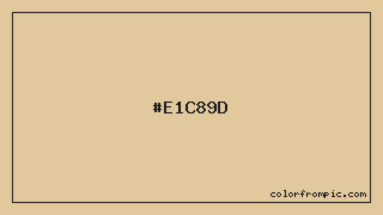 The hexadecimal color code #E1C89D represents a light shade in the orange family. In the RGB color model, this color is composed of 225 red, 200 green, and 157 blue, which translates to approximately 88% red, 78% green, and 62% blue. This makes it a moderately saturated color with warm undertones that can evoke different emotional responses depending on its application.