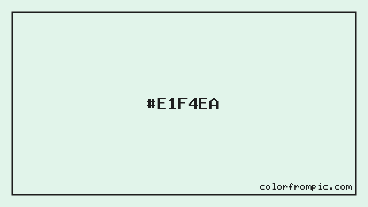 The HEX code for Very Light Emerald is #E1F4EA. In CSS you can use it directly as color: #E1F4EA; or as a background: background-color: #E1F4EA;. The three-character shorthand is not available for this color since it cannot be reduced without changing the value. Use the full six-character hex for accurate reproduction in any web or design project.