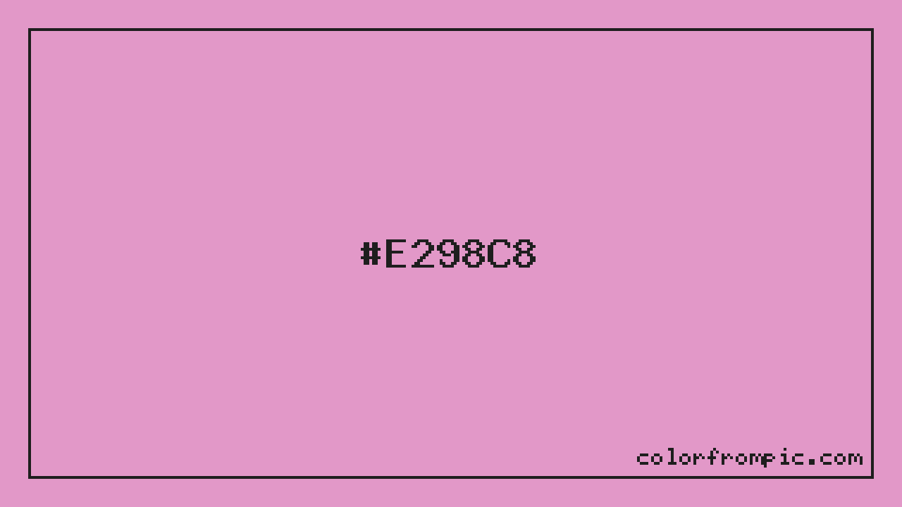 The HEX code for Light Warm Magenta is #E298C8. In CSS you can use it directly as color: #E298C8; or as a background: background-color: #E298C8;. The three-character shorthand is not available for this color since it cannot be reduced without changing the value. Use the full six-character hex for accurate reproduction in any web or design project.