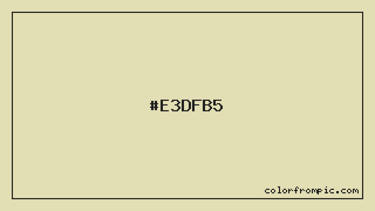 The hexadecimal color code #E3DFB5 represents a light shade in the orange family. In the RGB color model, this color is composed of 227 red, 223 green, and 181 blue, which translates to approximately 89% red, 87% green, and 71% blue. This makes it a slightly desaturated color with warm undertones that can evoke different emotional responses depending on its application.