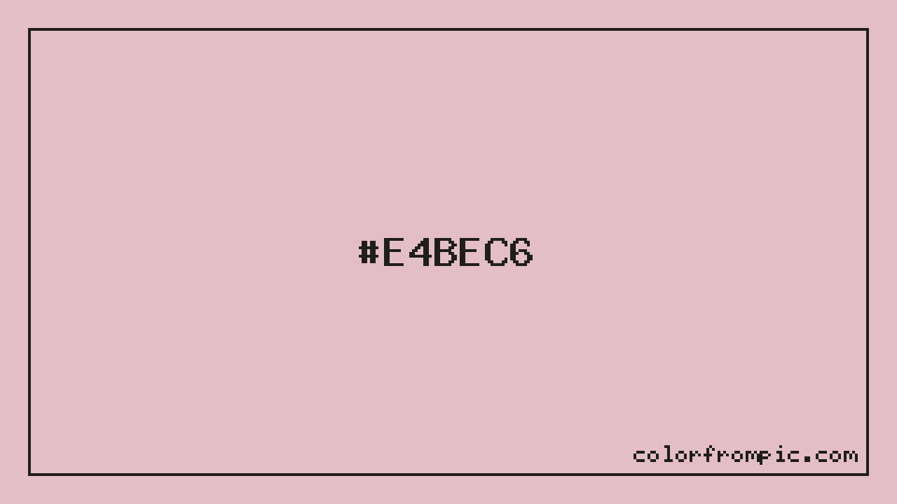 The HEX code for Light Rose is #E4BEC6. In CSS you can use it directly as color: #E4BEC6; or as a background: background-color: #E4BEC6;. The three-character shorthand is not available for this color since it cannot be reduced without changing the value. Use the full six-character hex for accurate reproduction in any web or design project.