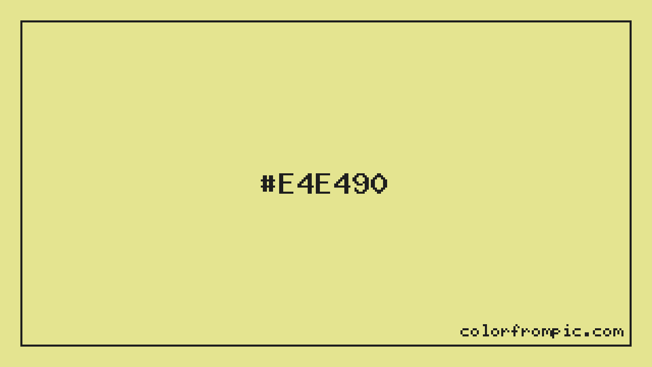 The hexadecimal color code #E4E490 represents a light shade in the yellow family. In the RGB color model, this color is composed of 228 red, 228 green, and 144 blue, which translates to approximately 89% red, 89% green, and 56% blue. This makes it a moderately saturated color with cool undertones that can evoke different emotional responses depending on its application.