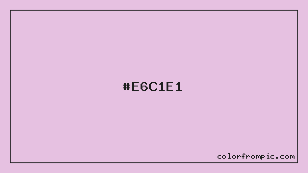 The HEX code for Light Purple is #E6C1E1. In CSS you can use it directly as color: #E6C1E1; or as a background: background-color: #E6C1E1;. The three-character shorthand is not available for this color since it cannot be reduced without changing the value. Use the full six-character hex for accurate reproduction in any web or design project.