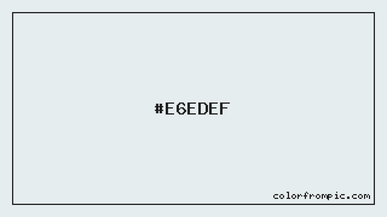 The approximate CMYK value of #E6EDEF is C:4% M:1% Y:0% K:6%. CMYK (Cyan, Magenta, Yellow, Key/Black) is the color model used in physical printing. Unlike RGB which mixes light additively on screens, CMYK mixes inks subtractively on paper. Note that the RGB-to-CMYK conversion is an approximation — screen colors and print colors exist in different color gamuts, and some screen colors cannot be exactly reproduced in print. For precise print work, consult a professional print color profile or Pantone matching system.
