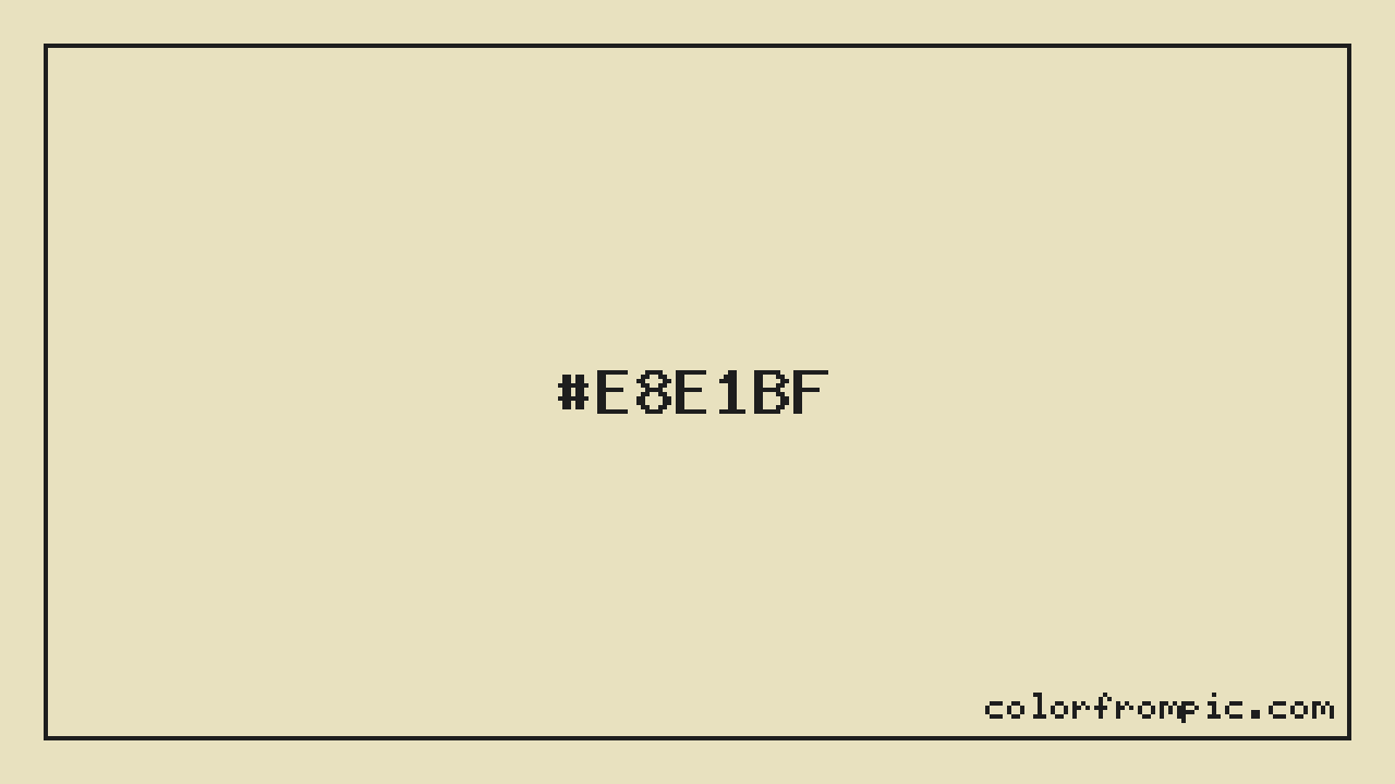 The hexadecimal color code #E8E1BF represents a very light shade in the orange family. In the RGB color model, this color is composed of 232 red, 225 green, and 191 blue, which translates to approximately 91% red, 88% green, and 75% blue. This makes it a slightly desaturated color with warm undertones that can evoke different emotional responses depending on its application.