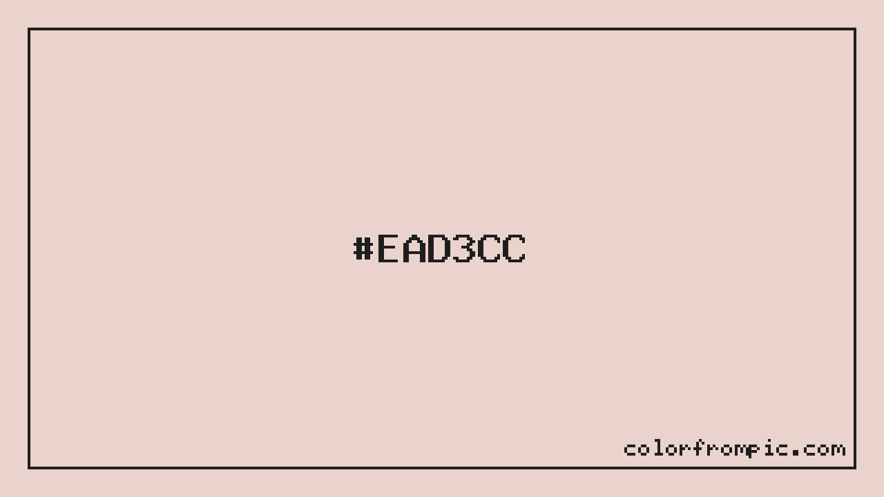 For print applications using the CMYK color model, #EAD3CC would be reproduced using 0% cyan, 10% magenta, 13% yellow, and 8% black. The closest web-safe color is #FFCCCC, which may be useful for ensuring compatibility across older displays and systems.