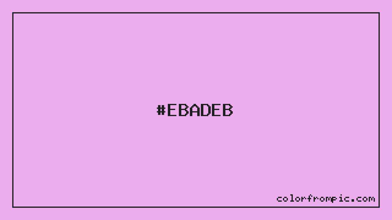 The HEX code for Light Warm Purple is #EBADEB. In CSS you can use it directly as color: #EBADEB; or as a background: background-color: #EBADEB;. The three-character shorthand is not available for this color since it cannot be reduced without changing the value. Use the full six-character hex for accurate reproduction in any web or design project.