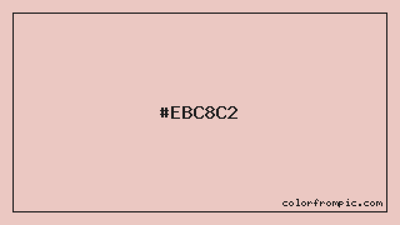 The approximate CMYK value of #EBC8C2 is C:0% M:15% Y:17% K:8%. CMYK (Cyan, Magenta, Yellow, Key/Black) is the color model used in physical printing. Unlike RGB which mixes light additively on screens, CMYK mixes inks subtractively on paper. Note that the RGB-to-CMYK conversion is an approximation — screen colors and print colors exist in different color gamuts, and some screen colors cannot be exactly reproduced in print. For precise print work, consult a professional print color profile or Pantone matching system.