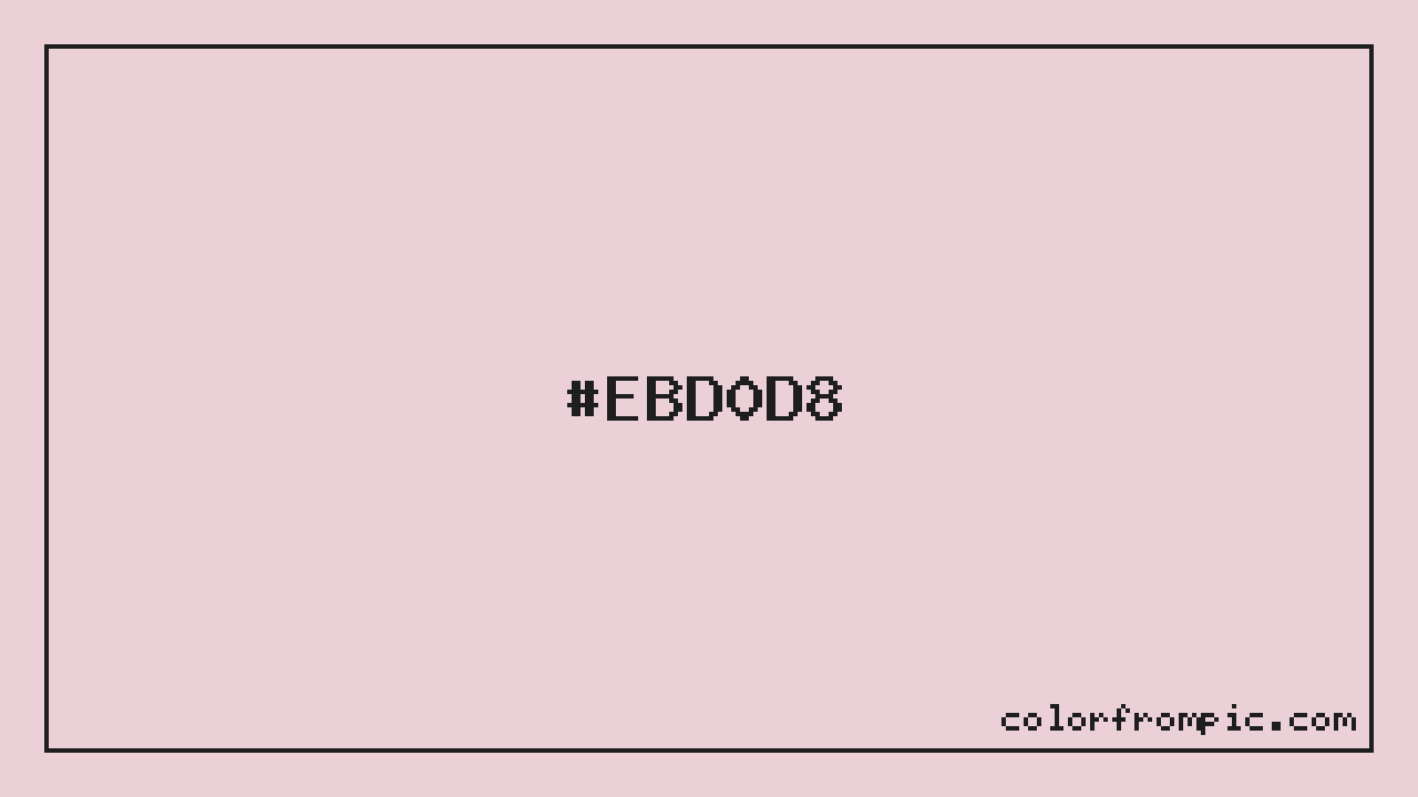 The approximate CMYK value of #EBD0D8 is C:0% M:11% Y:8% K:8%. CMYK (Cyan, Magenta, Yellow, Key/Black) is the color model used in physical printing. Unlike RGB which mixes light additively on screens, CMYK mixes inks subtractively on paper. Note that the RGB-to-CMYK conversion is an approximation — screen colors and print colors exist in different color gamuts, and some screen colors cannot be exactly reproduced in print. For precise print work, consult a professional print color profile or Pantone matching system.
