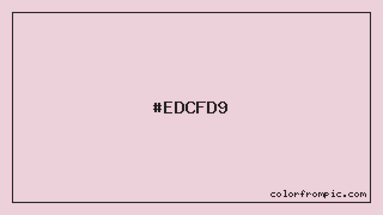 The approximate CMYK value of #EDCFD9 is C:0% M:13% Y:8% K:7%. CMYK (Cyan, Magenta, Yellow, Key/Black) is the color model used in physical printing. Unlike RGB which mixes light additively on screens, CMYK mixes inks subtractively on paper. Note that the RGB-to-CMYK conversion is an approximation — screen colors and print colors exist in different color gamuts, and some screen colors cannot be exactly reproduced in print. For precise print work, consult a professional print color profile or Pantone matching system.