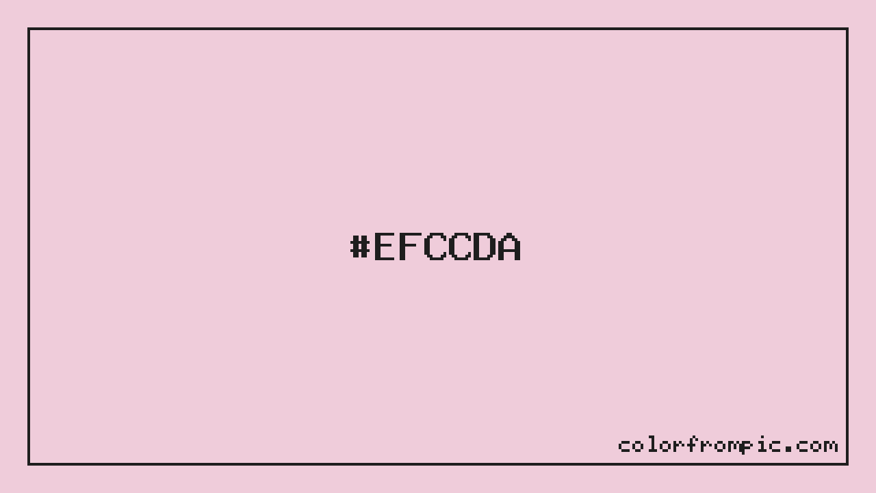 The approximate CMYK value of #EFCCDA is C:0% M:15% Y:9% K:6%. CMYK (Cyan, Magenta, Yellow, Key/Black) is the color model used in physical printing. Unlike RGB which mixes light additively on screens, CMYK mixes inks subtractively on paper. Note that the RGB-to-CMYK conversion is an approximation — screen colors and print colors exist in different color gamuts, and some screen colors cannot be exactly reproduced in print. For precise print work, consult a professional print color profile or Pantone matching system.