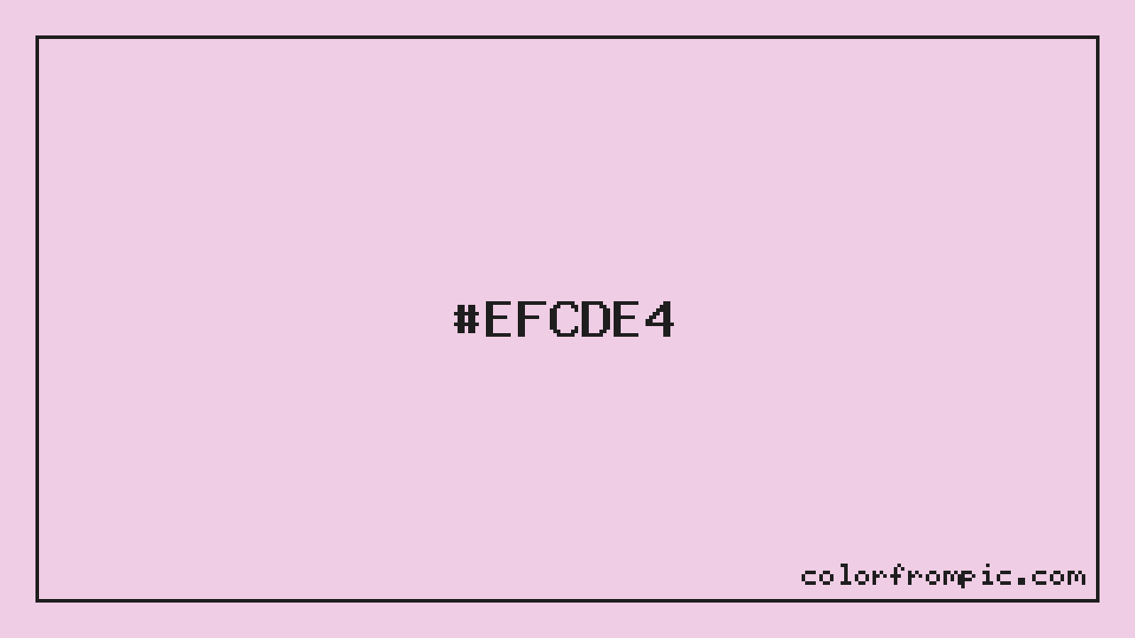 The HEX code for Light Warm Magenta is #EFCDE4. In CSS you can use it directly as color: #EFCDE4; or as a background: background-color: #EFCDE4;. The three-character shorthand is not available for this color since it cannot be reduced without changing the value. Use the full six-character hex for accurate reproduction in any web or design project.