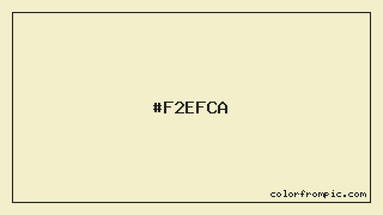 The HEX code for Light Warm Amber is #F2EFCA. In CSS you can use it directly as color: #F2EFCA; or as a background: background-color: #F2EFCA;. The three-character shorthand is not available for this color since it cannot be reduced without changing the value. Use the full six-character hex for accurate reproduction in any web or design project.