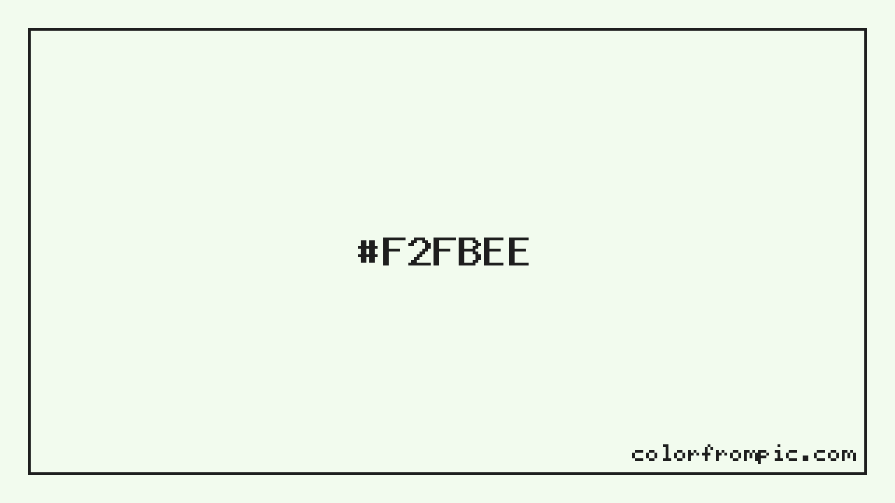 The HEX code for Very Light Cool Green is #F2FBEE. In CSS you can use it directly as color: #F2FBEE; or as a background: background-color: #F2FBEE;. The three-character shorthand is not available for this color since it cannot be reduced without changing the value. Use the full six-character hex for accurate reproduction in any web or design project.