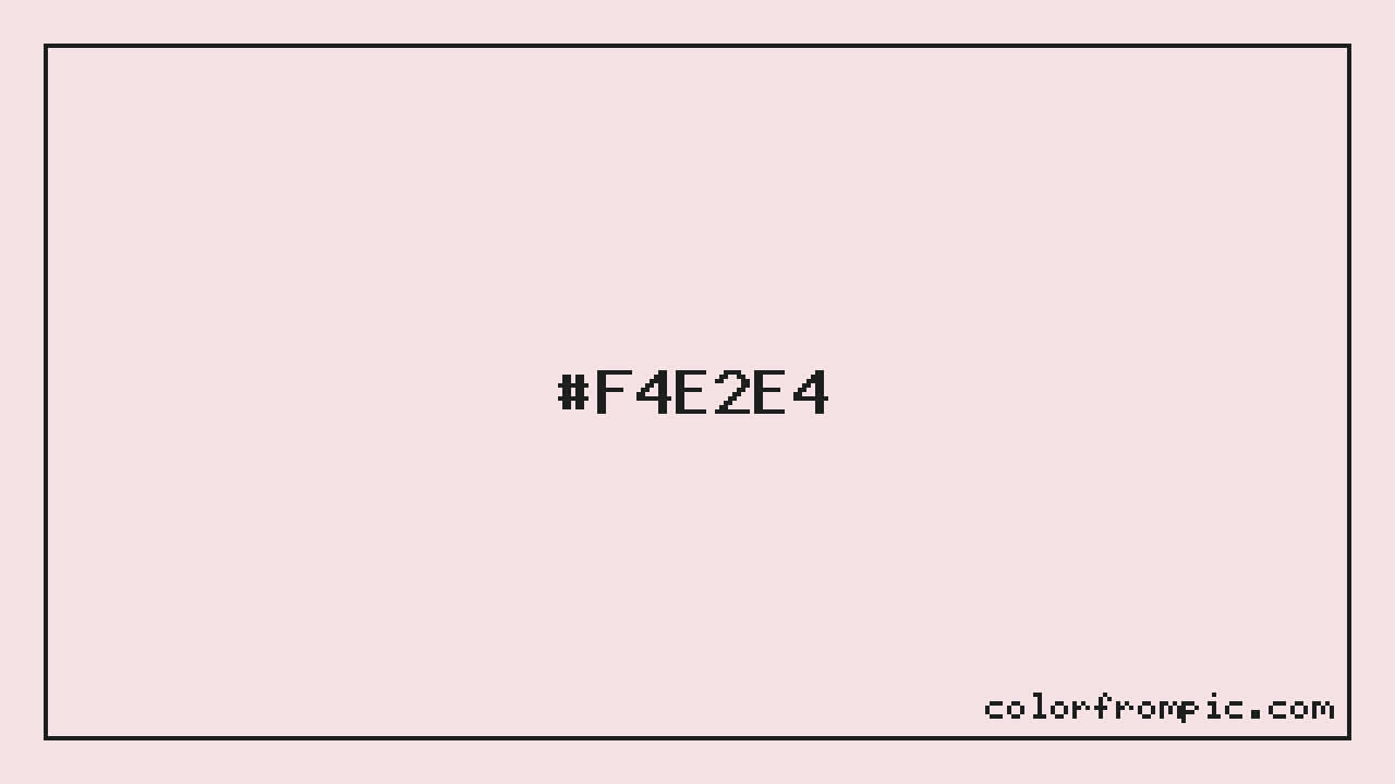 The HEX code for Very Light Rose is #F4E2E4. In CSS you can use it directly as color: #F4E2E4; or as a background: background-color: #F4E2E4;. The three-character shorthand is not available for this color since it cannot be reduced without changing the value. Use the full six-character hex for accurate reproduction in any web or design project.