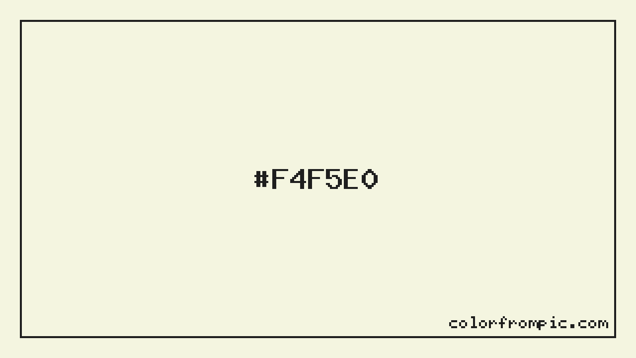 The HEX code for Very Light Warm Yellow is #F4F5E0. In CSS you can use it directly as color: #F4F5E0; or as a background: background-color: #F4F5E0;. The three-character shorthand is not available for this color since it cannot be reduced without changing the value. Use the full six-character hex for accurate reproduction in any web or design project.