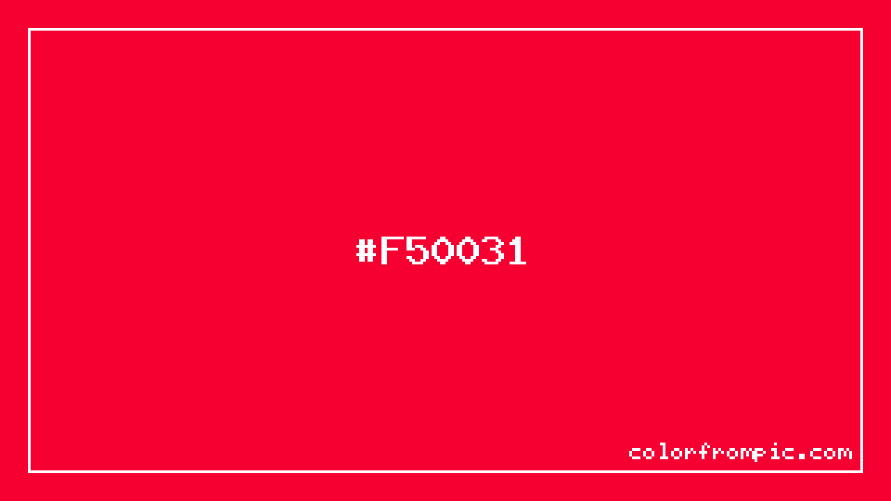 The hexadecimal color code #F50031 represents a medium shade in the red family. In the RGB color model, this color is composed of 245 red, 0 green, and 49 blue, which translates to approximately 96% red, 0% green, and 19% blue. This makes it a highly saturated color with warm undertones that can evoke different emotional responses depending on its application.