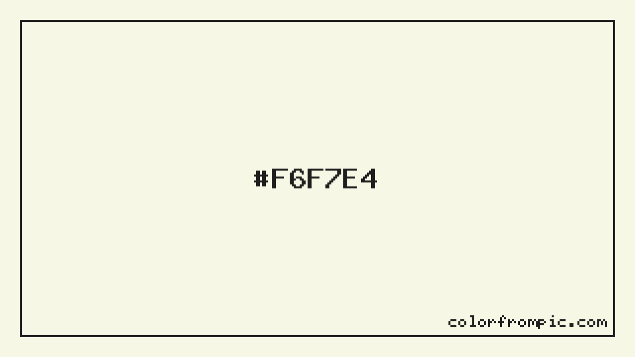 The HEX code for Very Light Warm Yellow is #F6F7E4. In CSS you can use it directly as color: #F6F7E4; or as a background: background-color: #F6F7E4;. The three-character shorthand is not available for this color since it cannot be reduced without changing the value. Use the full six-character hex for accurate reproduction in any web or design project.