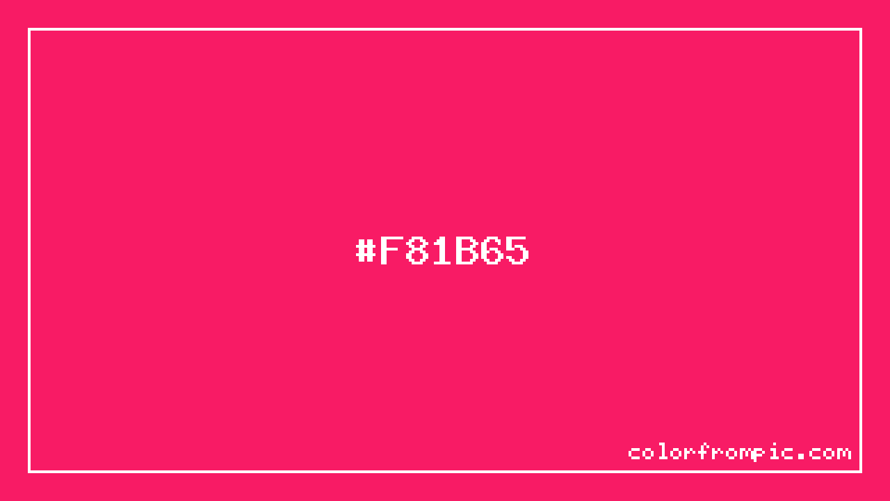 For print applications using the CMYK color model, #F81B65 would be reproduced using 0% cyan, 89% magenta, 59% yellow, and 3% black. The closest web-safe color is #FF3366, which may be useful for ensuring compatibility across older displays and systems.