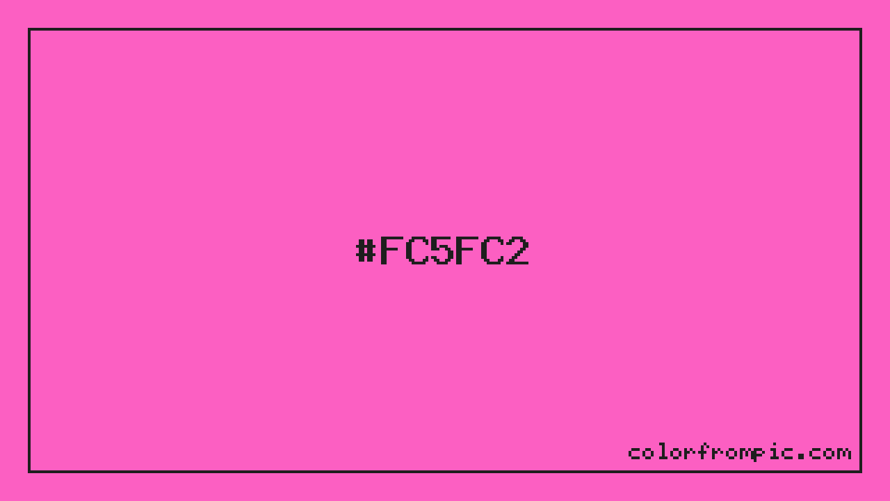 This color works well in various design contexts. With its medium lightness, it's versatile enough for both foreground elements and subtle backgrounds. The high saturation makes this color vibrant and attention-grabbing, ideal for call-to-action buttons, highlights, and accent elements. When pairing #FC5FC2 with other colors, consider its complementary color at hue 142° for maximum contrast, or use analogous colors within 30° of its hue for harmonious combinations. The decimal representation of this color is 16539586, which can be useful in certain programming contexts.
