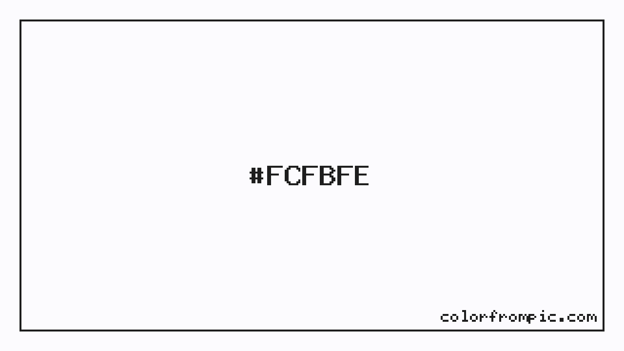 The hexadecimal color code #FCFBFE represents a very light shade in the blue family. In the RGB color model, this color is composed of 252 red, 251 green, and 254 blue, which translates to approximately 99% red, 98% green, and 100% blue. This makes it a moderately saturated color with cool undertones that can evoke different emotional responses depending on its application.