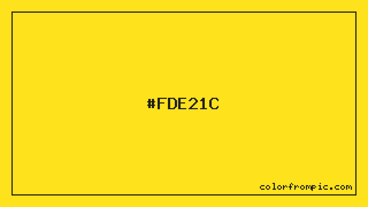 The HEX code for Vivid Amber is #FDE21C. In CSS you can use it directly as color: #FDE21C; or as a background: background-color: #FDE21C;. The three-character shorthand is not available for this color since it cannot be reduced without changing the value. Use the full six-character hex for accurate reproduction in any web or design project.