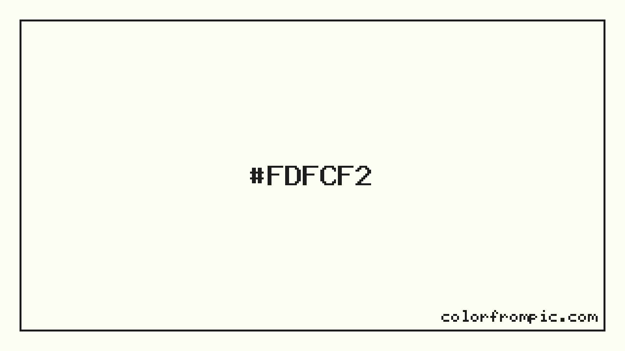 The HEX code for Very Light Warm Amber is #FDFCF2. In CSS you can use it directly as color: #FDFCF2; or as a background: background-color: #FDFCF2;. The three-character shorthand is not available for this color since it cannot be reduced without changing the value. Use the full six-character hex for accurate reproduction in any web or design project.