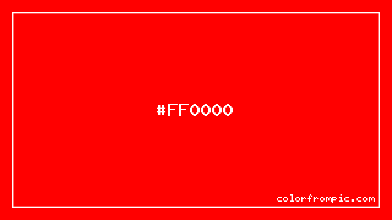 The HEX code for Red is #FF0000. In CSS you can use it directly as color: #FF0000; or as a background: background-color: #FF0000;. The three-character shorthand is not available for this color since it cannot be reduced without changing the value. Use the full six-character hex for accurate reproduction in any web or design project.