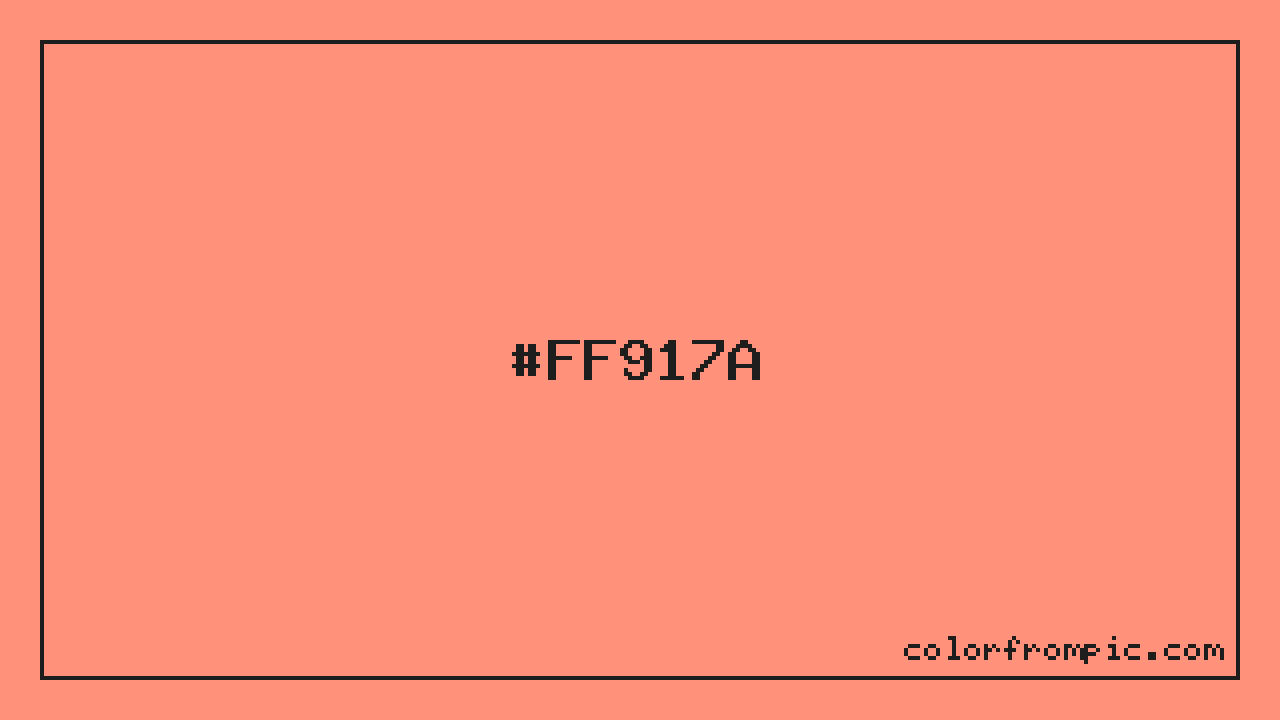 The hexadecimal color code #FF917A represents a light shade in the red family. In the RGB color model, this color is composed of 255 red, 145 green, and 122 blue, which translates to approximately 100% red, 57% green, and 48% blue. This makes it a highly saturated color with warm undertones that can evoke different emotional responses depending on its application.