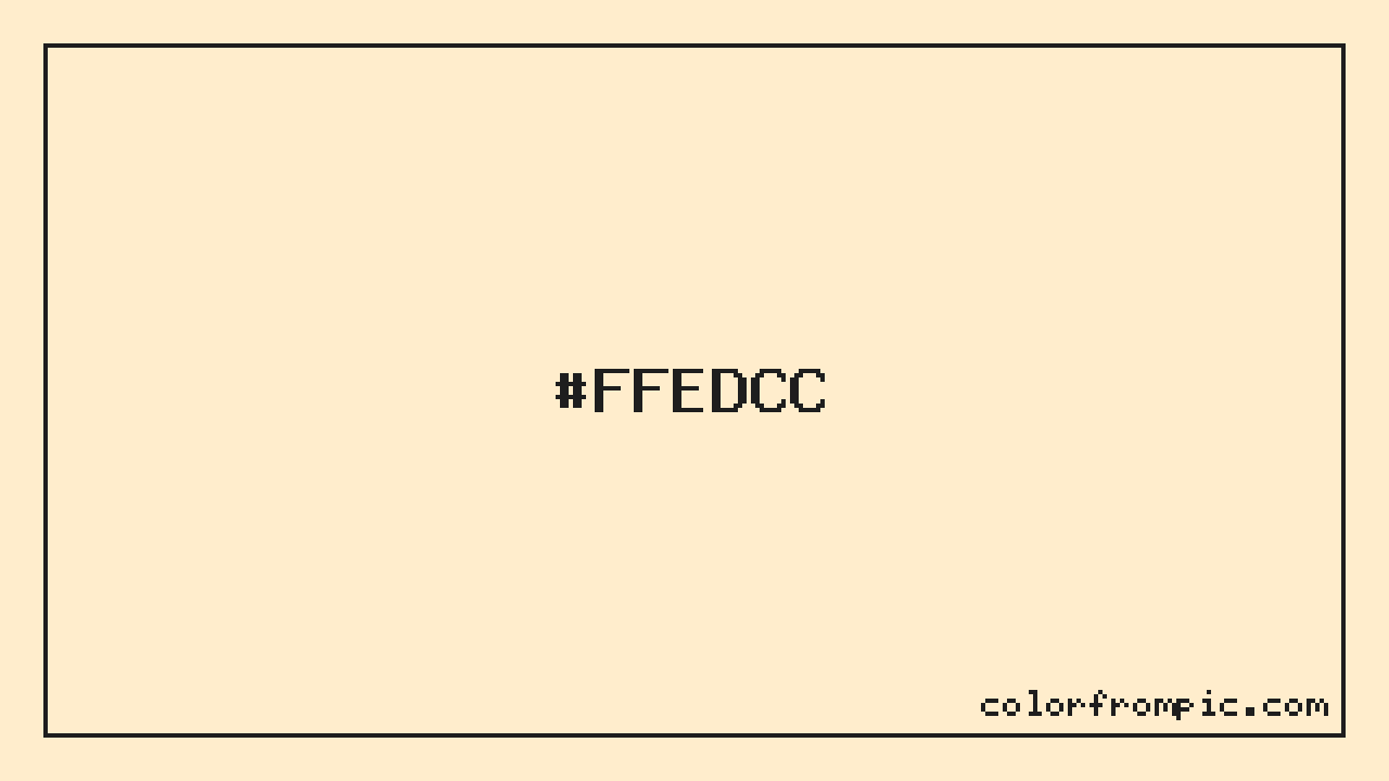 The hexadecimal color code #FFEDCC represents a very light shade in the orange family. In the RGB color model, this color is composed of 255 red, 237 green, and 204 blue, which translates to approximately 100% red, 93% green, and 80% blue. This makes it a highly saturated color with warm undertones that can evoke different emotional responses depending on its application.