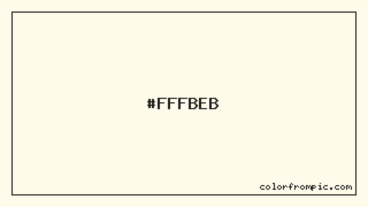 The HEX code for Very Light Vivid Amber is #FFFBEB. In CSS you can use it directly as color: #FFFBEB; or as a background: background-color: #FFFBEB;. The three-character shorthand is not available for this color since it cannot be reduced without changing the value. Use the full six-character hex for accurate reproduction in any web or design project.